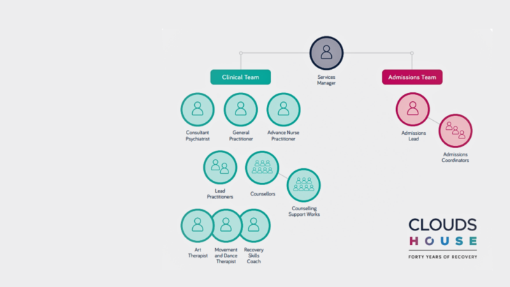 Our large and hugely experienced counselling team delivers a packed treatment programme alongside the clinical care, with individual and group therapy across a broad range of topics and modalities. Group sizes range from 8-12 (per therapeutic class).